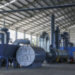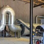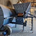 linia suszarnicza, bęben suszarniczy oraz zbiornik zasypowy wilgotnych trocin